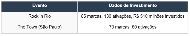 Apesar desse contexto desafiador, os investimentos em brand experience no Brasil continuam expressivos. Segundo dados públicos citados no estudo[3]: