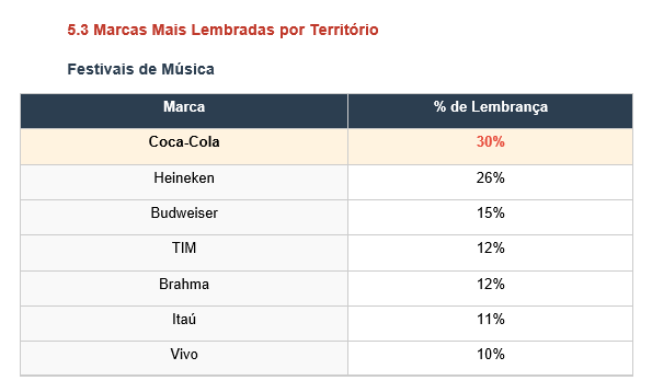 - É necessária consistência ao longo do tempo para construir territórios de marca duradouros — como demonstra a Coca-Cola com décadas de presença em festivais de música.