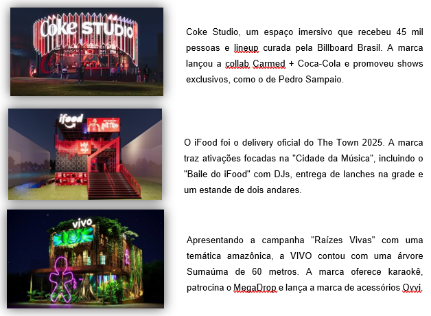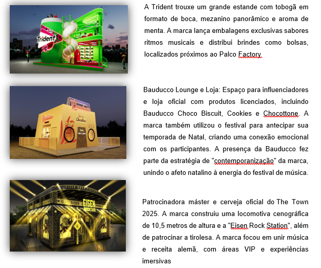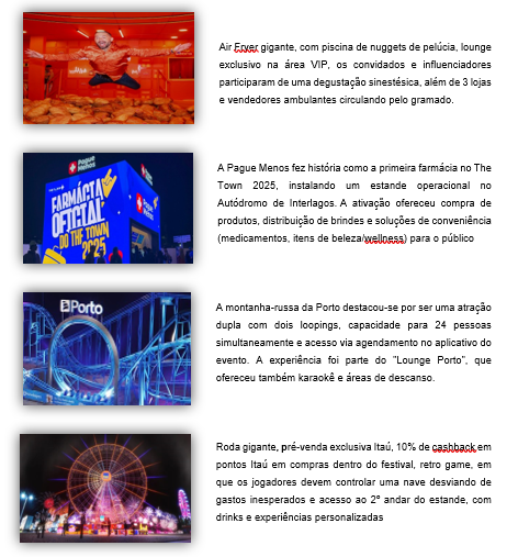 - Ativações que se destacam vão além da diversão: as que geram maior engajamento e resultado entregam algo útil ao participante (farmácia no festival, cashback, pré-venda exclusiva).