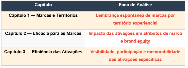 O estudo analisou seis territórios de brand experience, escolhidos por sua relevância no mercado brasileiro: