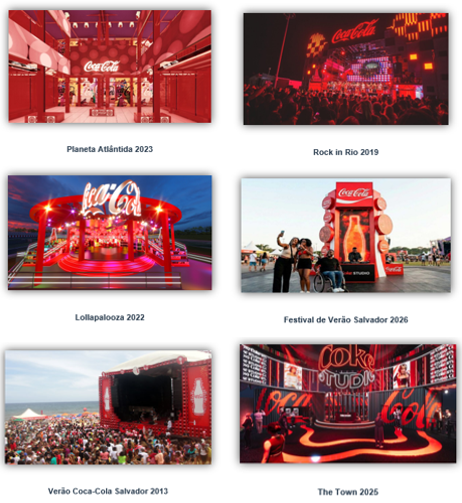 - Coke Studio: espaço próprio nos festivais, presente desde 2001 no Rock in Rio com consistência ao longo de 8 edições.